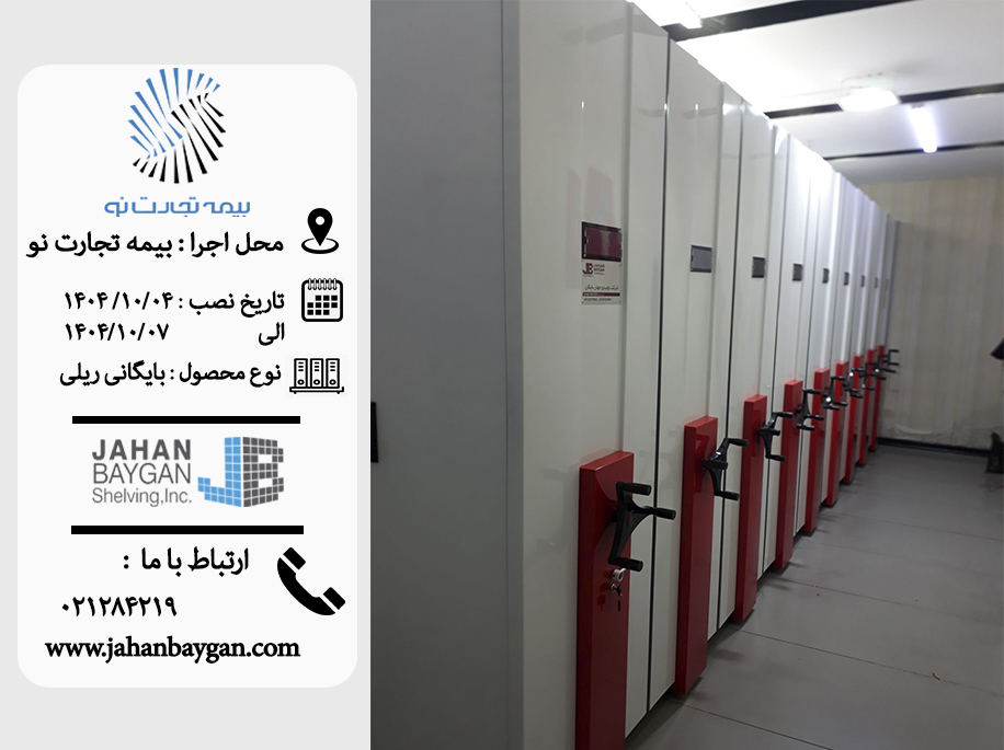 پروژه بایگانی بیمه تجارت نو، نمونهای موفق از اجرای دقیق و سریع سیستمهای ریلی مدرن توسط شرکت جهان بایگان است. طی چهار روز کاری، یک بایگانی فشرده، امن و با ظرفیت بالا نصب شد که حالا نقش مهمی در نظم، سرعت و امنیت این مجموعه ایفا میکند.